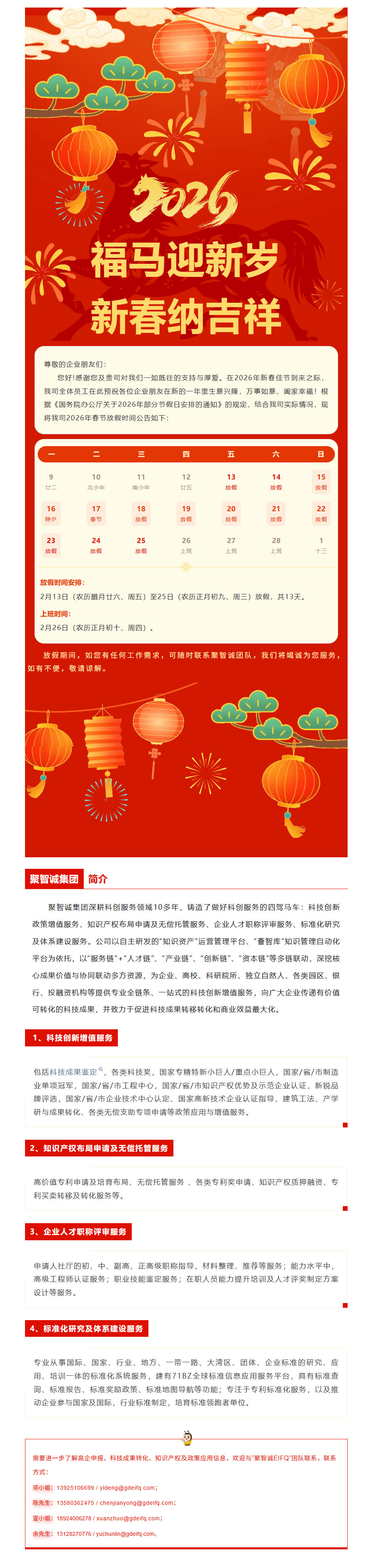 聚智诚集团2026年春节放假通知